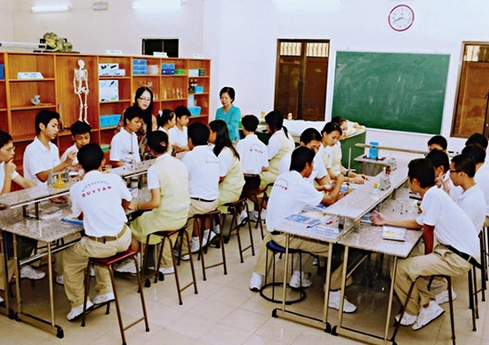 Điều ấn tượng thứ hai với chúng tôi đó là các học sinh của Trường được học với giáo viên người nước ngoài trong những giờ ngoại ngữ để rèn luyện các kỹ năng nghe, hiểu và giao tiếp. Đây là một phương pháp giảng dạy ngoại ngữ thực sự giúp học sinh học ngoại ngữ không đơn giản như là một môn học mà là học cả nền văn hóa mới qua ngôn ngữ.