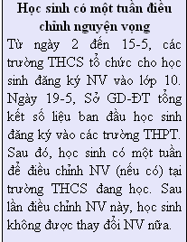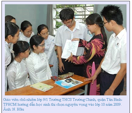 Tuy nhiên, để có thể trúng tuyển vào lớp 10, việc đăng ký NV cần phải được cân nhắc kỹ lưỡng trên cơ sở sức học của mình và tham khảo điểm chuẩn các trường THPT trong những năm vừa qua, gần nhất là năm 2008 mà sở đã gửi đến từng học sinh thông qua các trường THCS.
