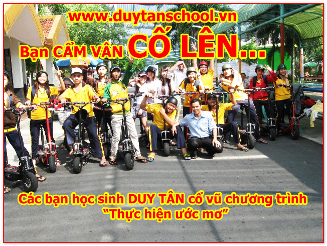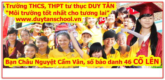 Em Châu Nguyệt Cẩm Vân học sinh lớp 11A3, với số báo danh dự thi là 46 (BẤM VÀO xem video) đã vào vòng chung kết cuộc thi " Thực hiện ước mơ" do Viện Đào Tạo Quốc tế - Trường Đại học Kinh tế & Thành Đoàn TPHCM tổ chức vào ngày 14/2013 tại hội trường Nhà Văn Hóa Thanh Niên. Xin mời các bạn học sinh trường THCS, THPT Duy Tân và cư dân cộng đồng mạng tham gia cổ vũ cho bạn Cẩm Vân tại hội trường Nhà Văn Hóa Thanh Niên sáng ngày 14 tháng 4 năm 2013.