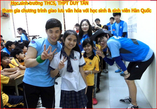Dưới sự giúp đỡ nhiệt tình của các bạn sinh viên khoa Hàn Quốc học của Trường Đại Học Nguyễn Tất Thành cùng với sự vui vẻ, gần gũi của các sinh viên Trường Đại học Chunbuk (Hàn Quốc). Lúc 9h ngày 14/01/2014 buổi giao lưu đã được diễn ra dưới sự hân hoan chào đón của tất cả các học sinh Trường THCS, THPT Duy Tân.