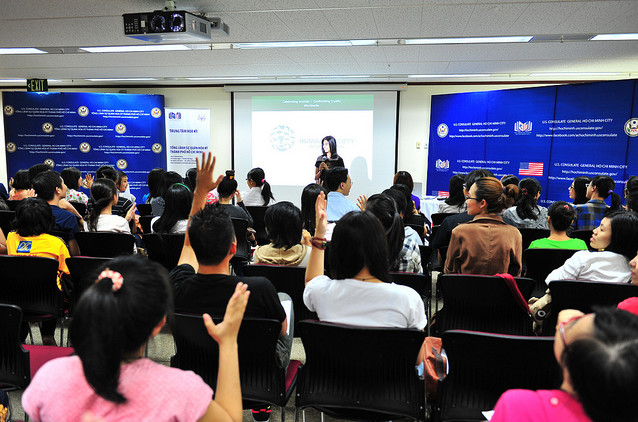 Các chương trình câu lạc bộ tiếng Anh, tìm hiểu về cộng đồng và các chính sách do Trung tâm Hoa Kỳ trực thuộc Tổng lãnh sự quán Mỹ tại TP HCM tổ chức