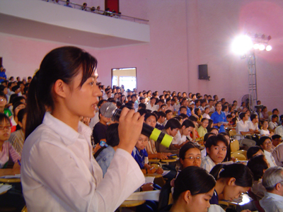 Bạn Huỳnh Thị Mai Liên – HS trường THPT Nguyễn Thông (huyện Châu Thành) tâm sự: “Sắp thi rồi mà em không biết cụ thể đề thi, ngày thi, môn thi để chuẩn bị”. Tiến sĩ Nguyễn Đức Nghĩa - nhắc nhở: “Các em phải nhớ những mốc thời gian quan trọng như: kỳ thi tốt nghiệp THPT năm nay sẽ tổ chức trong 3 ngày (ngày 1, 3, 4.6) và đặc biệt chỉ có một đợt thi duy nhất chứ không phải 2 đợt như mọi năm. Nếu thi rớt, các em sẽ không có cơ hội tham dự kỳ thi tuyển sinh CĐ, ĐH. Còn kỳ tuyển sinh CĐ, ĐH sẽ tổ chức thành 3 đợt. Học sinh THPT nộp hồ sơ trực tiếp tại trường mình đang học, TS tự do có thể nộp tại các trường CĐ, ĐH nơi mình đăng ký dự thi”.