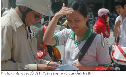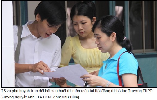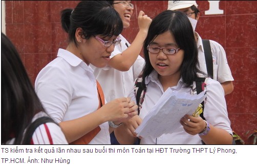 Hết giờ làm bài, các thi sinh ùa ra với nụ cười tươi rói. Một nhóm HS Trường An Lạc cho biết lý do không thèm xem lại bài: “Tụi em đã xem kỹ trong phòng thi rồi, làm dư thời gian cả tiếng đồng hồ mà”.