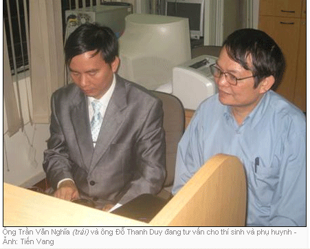 - Ông Đỗ Thanh Duy: Thí sinh nộp hồ sơ ĐKDT ở đâu thì sẽ nhận giấy báo dự thi tại đó. Trong trường hợp không nhận được giấy báo dự thi, thí sinh cần hỏi nơi đã thu nhận hồ sơ. Nếu giấy báo bị thất lạc, thi sinh mang tờ phiếu số 2 cùng giấy xác nhận chưa nhận được giấy báo dự thi của sở GD-ĐT cấp đến trường đăng ký dự thi. Hội đồng tuyển sinh trường sẽ đối chiếu với hồ sơ gốc và giải quyết.