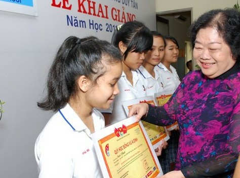 Thời gian dần trôi, tôi dang từng ngày lớn lên giờ đây đối với tôi – một cô bé 16 tuổi đã trưởng thành hơn, suy nghĩ đã chín chắn hơn trước. Tôi đã nhận thức được nhiều thứ, tình cảm tôi dành cho Duy Tân ngày càng sâu nặng. Không hiểu vì sao cứ mỗi mùa khai trường , đứng trước sân tôi vẫn có cảm giác bỡ ngỡ, bồn chồn, ngơ ngác ngắm nhìn xung quanh trường như lúc mới vào, mọi thứ đều thân quen, dĩ nhiên với tôi nó còn mới lắm. Tôi thực sự rất rất khâm phục và hãnh diện về ngôi trường, Cô hiệu trưởng tấm lòng cô rộng lớn, chữ “nhân” trong tim cô rất nồng hậu, cô đã cưu mang bắt đầu từ 38 đến hôm nay là 53 học sinh dân tộc thiểu số dọc miền Bắc Trung Nam, cô đã hi sinh tất cả lòng nhân ái của mình vì mong muốn chúng tôi sẽ có một tương lai rạng ngời, với niềm hi vọng lớn lao giúp một phần khó khăn cho cuộc sống gia đình của chúng tôi, tạo điều kiện cho những người con vùng sâu vùng xa được đến trường như bao bạn khác. Cô mong rằng chúng tôi sẽ là nguồn nhân lực trẻ, là công dân thực thụ tài giỏi sau này về xây dựng địa phương, đất nước phát triển vững chắc. Trường ân cần chu đáo chăm lo cho cuộc sống của chúng tôi từng món ăn tinh thần đến vật chất và kiến thức. Tại nơi đây chúng tôi được dạy từng kỷ năng sống để thích ứng với mọi tình huống thực tế, làm sao cho phải, biết chia sẻ, nhường nhịn, đùm bọc, mạnh mẽ, đam mê, cố gắng kiên trì chiến đấu với những con số, bảng giá trị lượng giác, bài thuyết minh cực kì khó. Thầy cô đã truyền đạt lại rất nhiều kinh nghiệm thực tế để học sinh chúng tôi có vốn sống tốt hơn. Trường là điểm tựa, là nơi chúng tôi luôn nghĩ về. Thầy cô biết tôn trọng ý kiến, lắng nghe từ học sinh nhưng biết cách sàng lọc phân tích và xử lý hợp tình hợp lý cho từng tình huống khác nhau, đó là điều tôi thấy quý từ Duy Tân.