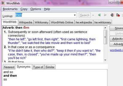 WordWeb là tiện ích cho phép tìm kiếm các từ đồng nghĩa hoặc biết rõ hơn về nghĩa của từ mà bạn đang sử dụng. Ví dụ, nếu bạn đang băn khoăn giữa việc dùng từ “than” hay “then”, bạn có thể kiểm tra nghĩa của hai từ này chỉ bằng một cú nhấn chuột mà không cần phải thoát khỏi chương trình soạn thảo.