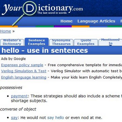 Ngoài ra, bạn cũng có thể sử dụng YourDictionary (http://www.yourdictionary.com/) để tra từ theo dạng Anh – Anh, giúp học cách sử dụng từ hợp lý. Chỉ cần tìm kiếm từ bạn muốn và sau đó kích vào tab ‘Sentence examples‘. Nó sẽ đưa ra các ví dụ về cách dùng từ trong từng ngữ cảnh.