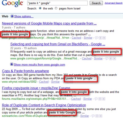 Ví dụ, tìm kiếm câu : “paste it * google”, bạn sẽ nhận được kết quả là “paste it into google”.Lưu ý: Tiến hành tìm kiếm từ trang web http://google.co.uk thay vì tìm kiếm từ http://google.com.vn để có được kết quả tốt nhất.