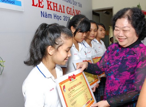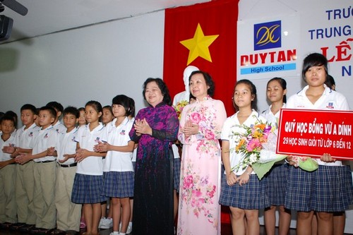 Hôm nay ngày 7 tháng 5 năm 2012 Bà Trương Mỹ Hoa nguyên Phó Chủ Tịch nước, Chủ Tịch Quỹ học bổng Vừ A Dính đến thăm trường và trao quyết định bổ nhiệm Bà Nguyễn Thị Sơn, Chủ Tịch Hội Đồng Quản Trị, Hiệu Trưởng Trường THCS, THPT Duy Tân giữ chức vụ Phó Giám Đốc Quỹ học bổng Vừ A Dính, thuộc Trung Ương Đoàn Thanh Niên Cộng Sản Hồ Chí Minh.