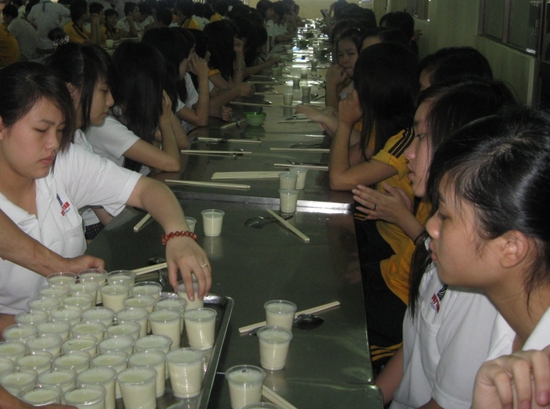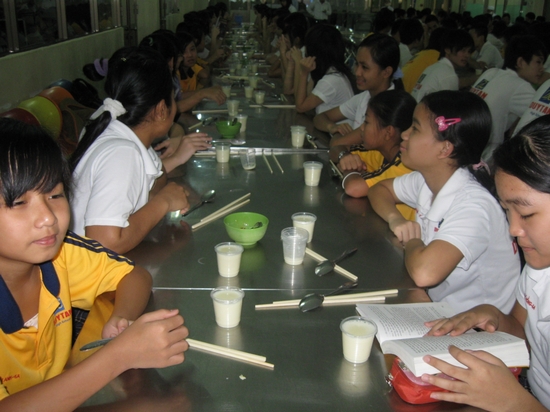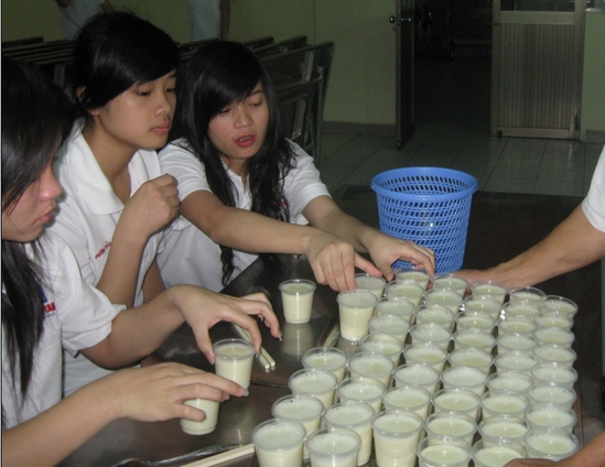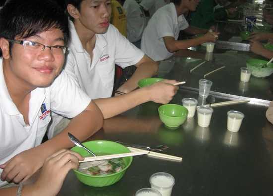 Sữa đậu nành là thức uống chính cho các em học sinh Duy Tân trong các bữa ăn sáng tại trường
