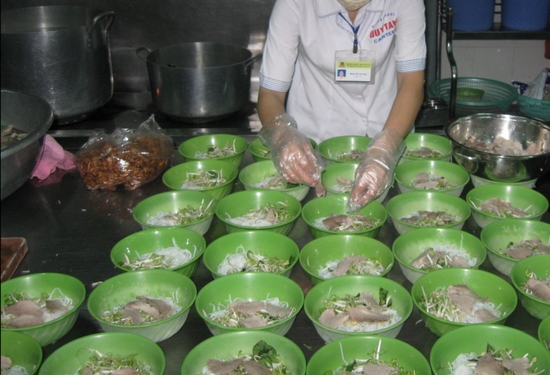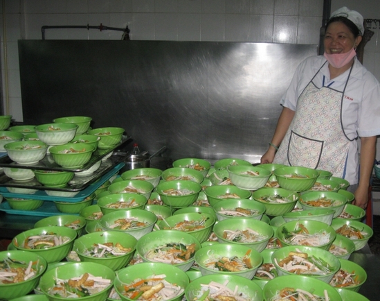 Bếp ăn trường Duy Tân chuẩn bị bữa ăn sáng cho các em học sinh