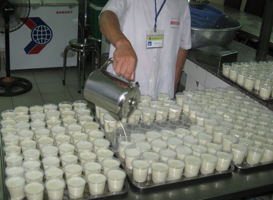Sữa đậu nành chế biến tại trường là thức uống chính cho các em học sinh Duy Tân trong các bữa ăn sáng.