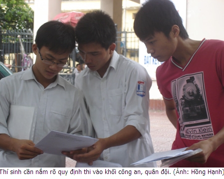 Thông tin từ Bộ GD-ĐT cho biết, thí sinh dự thi vào các trường công an, quân đội đều thi chung đề thi của Bộ GD-ĐT. Theo đó, tất cả thí sinh dự thi vào các Học viện, trường ĐH khối công an, quân đội đều phải qua sơ tuyển tại địa phương.