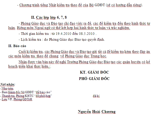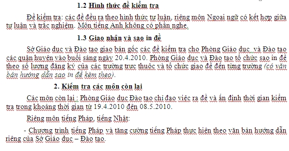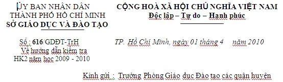 Về hướng dẫn kiểm tra học kì 2 cấp THCS, năm học 2009 – 2010 của Sở Giáo Dục & Đào Tạo TP Hồ Chí Minh